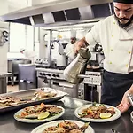 Вранці гостям пропонують безкоштовний холодний сніданок "шведський стіл". На території працює лаунж-бар. За 5 хвилин можна дійти до ресторану Panama, а на відстані 5 хвилин пішки знаходиться ресторан Pizzeria Ristorante 88.